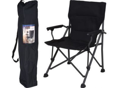 Cette chaise de camping a une hauteur de 90 cm. La hauteur d'assise est de 47,5 cm, la largeur d'assise de 48,5 cm et la profondeur d'assise de 43 cm. La chaise est livrée dans une élégante version noire.