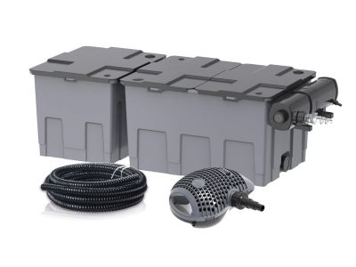 Avec le Heissner FPU 40000-00, vous disposez d'un kit complet pour maintenir l'eau de votre bassin claire et saine tout au long de la saison. Ce kit de filtration à écoulement est livré avec une pompe puissante et réglable et une unité UV-C séparée de 36 watts. Vous êtes ainsi immédiatement équipé de toute la technologie nécessaire pour une purification efficace de l'eau.