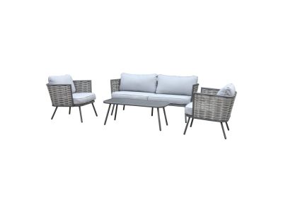 Ce salon de jardin en aluminium de la marque Pure Garden & Living se compose d'un canapé confortable, de deux fauteuils et d'une grande table basse. La structure d'aspect rotin du canapé et des fauteuils confère à l'ensemble une apparence moderne, idéale pour les jardins élégants. La couleur grise du salon de jardin s'associe facilement avec d'autres couleurs de votre extérieur et lui donne un aspect luxueux.